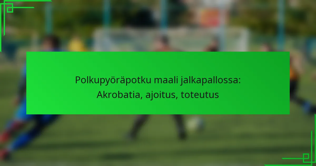 Jalkapallon pyörähdys on hämmästyttävä akrobaattinen liike, jossa pelaaja osuu palloon ilmassa ollessaan, usein suorittaen taaksepäin käännöksen. Tämän tekniikan hallitseminen vaatii poikkeuksellista ajoitusta, kehonhallintaa ja koordinaatiota, jotta palloon saadaan onnistunut osuma samalla kun tasapaino säilyy. Ihanteellinen hetki yrittää pyörähdystä on, kun pallo on vyötärön korkeudella, mikä mahdollistaa tehokkaan laukauksen kohti maalia.