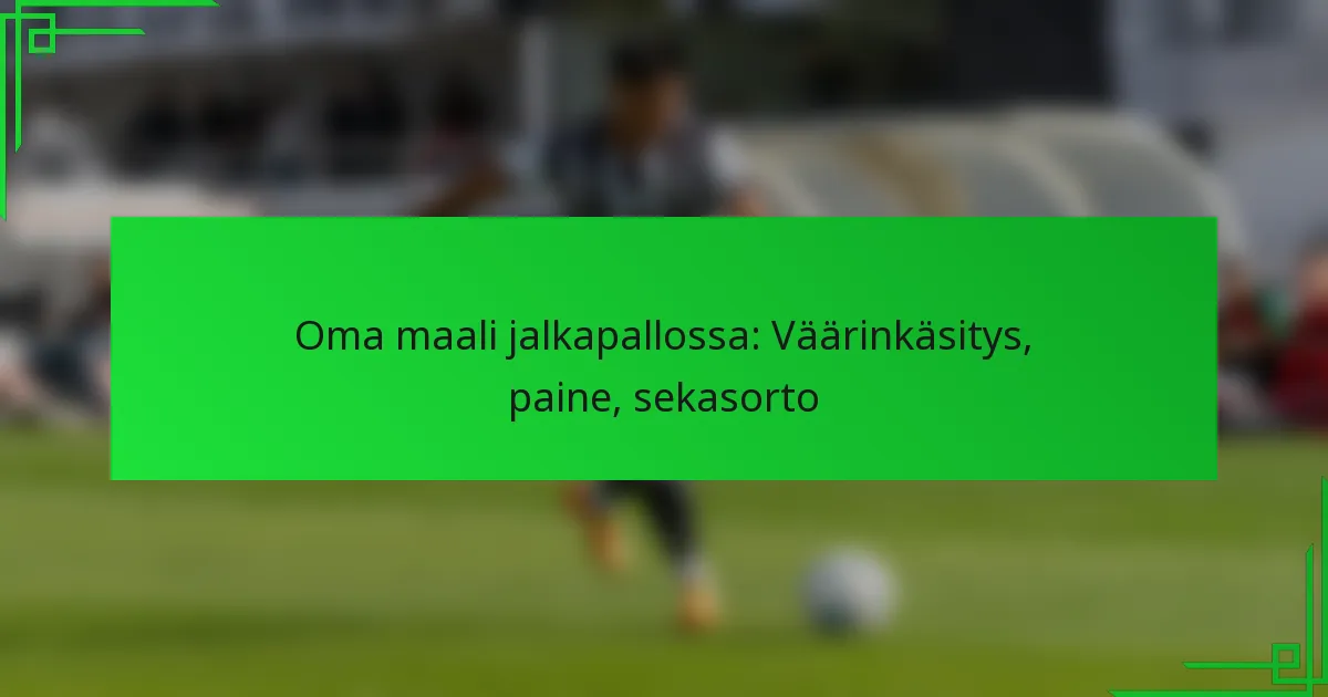 Omamaali jalkapallossa on turhauttava tapahtuma, jossa pelaaja vahingossa tekee maalin vastustavalle joukkueelle, usein virhearvioinnin tai hämmennyksen vuoksi. Vastustajien aiheuttama paine ja tietoisuuden puute voivat johtaa näihin tahattomiin virheisiin, mikä vaikuttaa merkittävästi pelin lopputulokseen. Korkean panoksen tilanteiden psykologinen stressi voi hämärtää pelaajan päätöksentekoa, mikä johtaa impulsiivisiin tekoihin, jotka edesauttavat oman joukkueen maalin syntymistä.