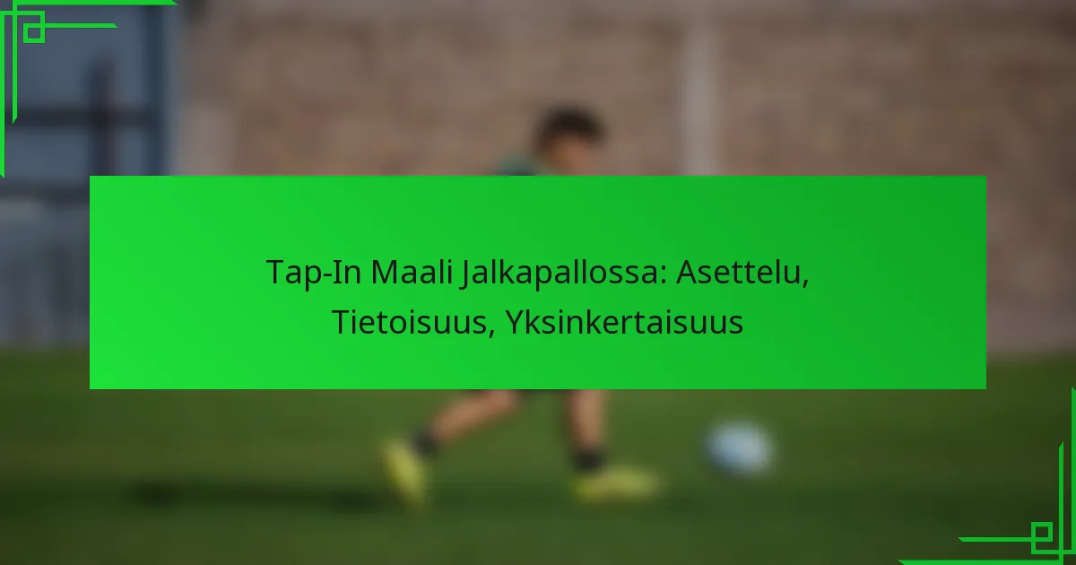 Sijoittuminen tap-in-maalia varten tarkoittaa oikeassa paikassa olemista oikeaan aikaan, valmiina hyödyntämään maalintekomahdollisuuksia. Keskeisiä tekijöitä ovat kenttäpaikkojen ymmärtäminen, pelaajien liikkeet ja pelin seuraaminen, jotta voit maksimoida maalintekomahdollisuutesi.